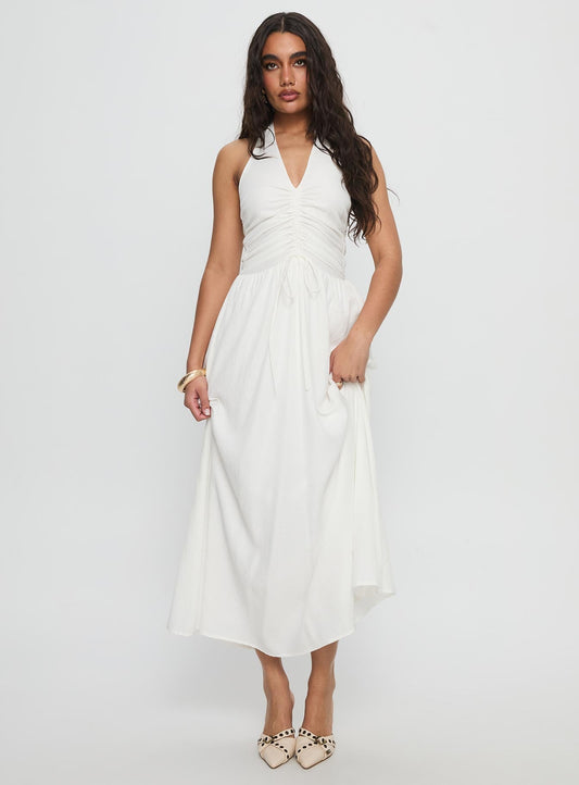 Junipa Halter Asymmetrical Maxi Dress White Stripe