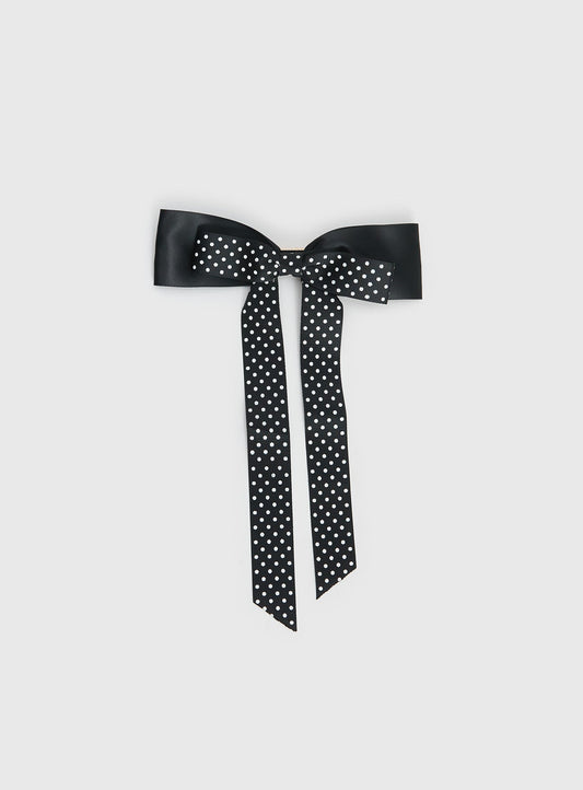 Reflecting Layered Bow Black Polka