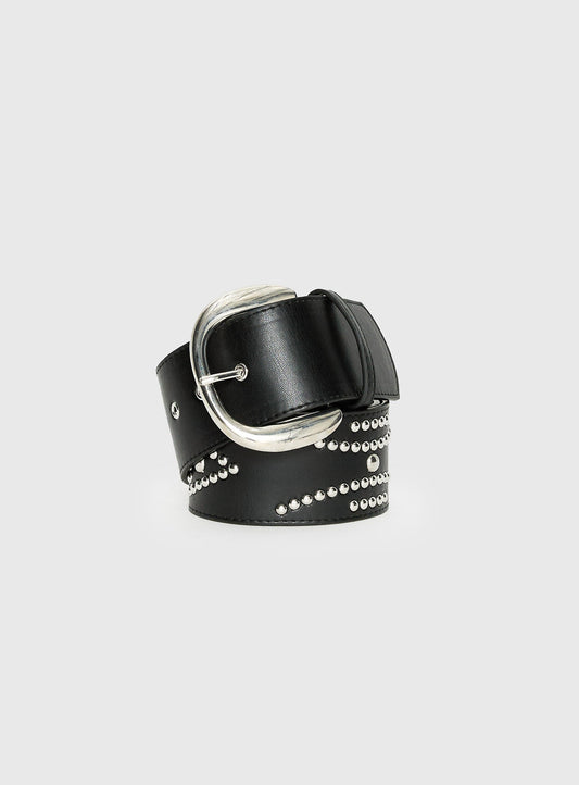 Alstro Faux Leather Flower Studded Belt Brown / Silver