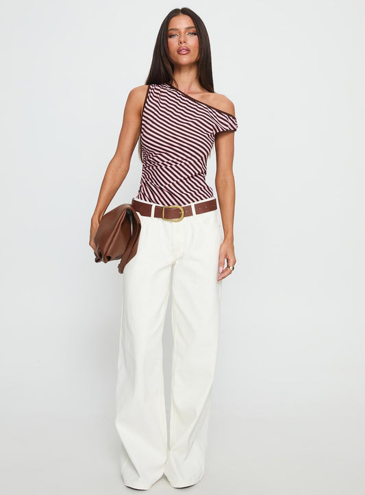 Ayviana One Shoulder Bodysuit Pink / Brown Stripe