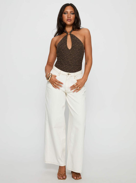 Libbey Hardware Detail Textured Bodysuit Brown