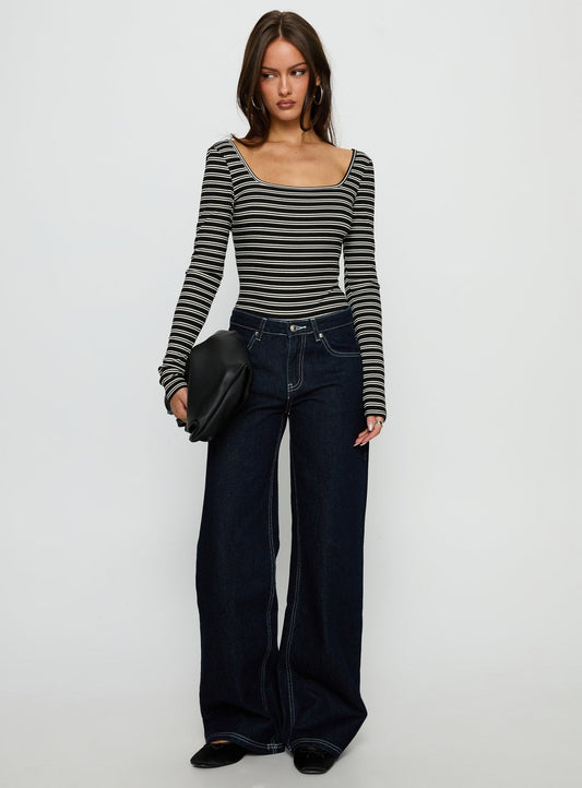 Donica Square Neck Long Sleeve Bodysuit Grey Stripe
