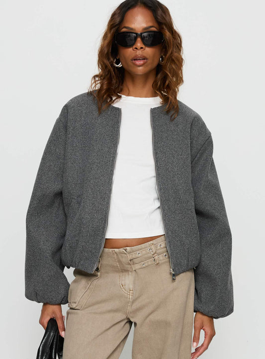 Jessalynn Faux Suede Zip Through Jacket Brown