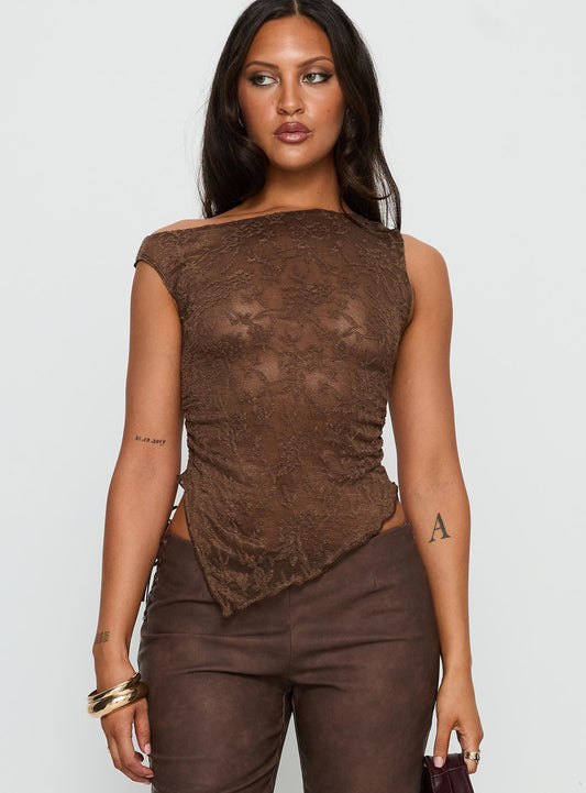 Double Back Floral Cut Out Long Sleeve Top Chocolate / Pink