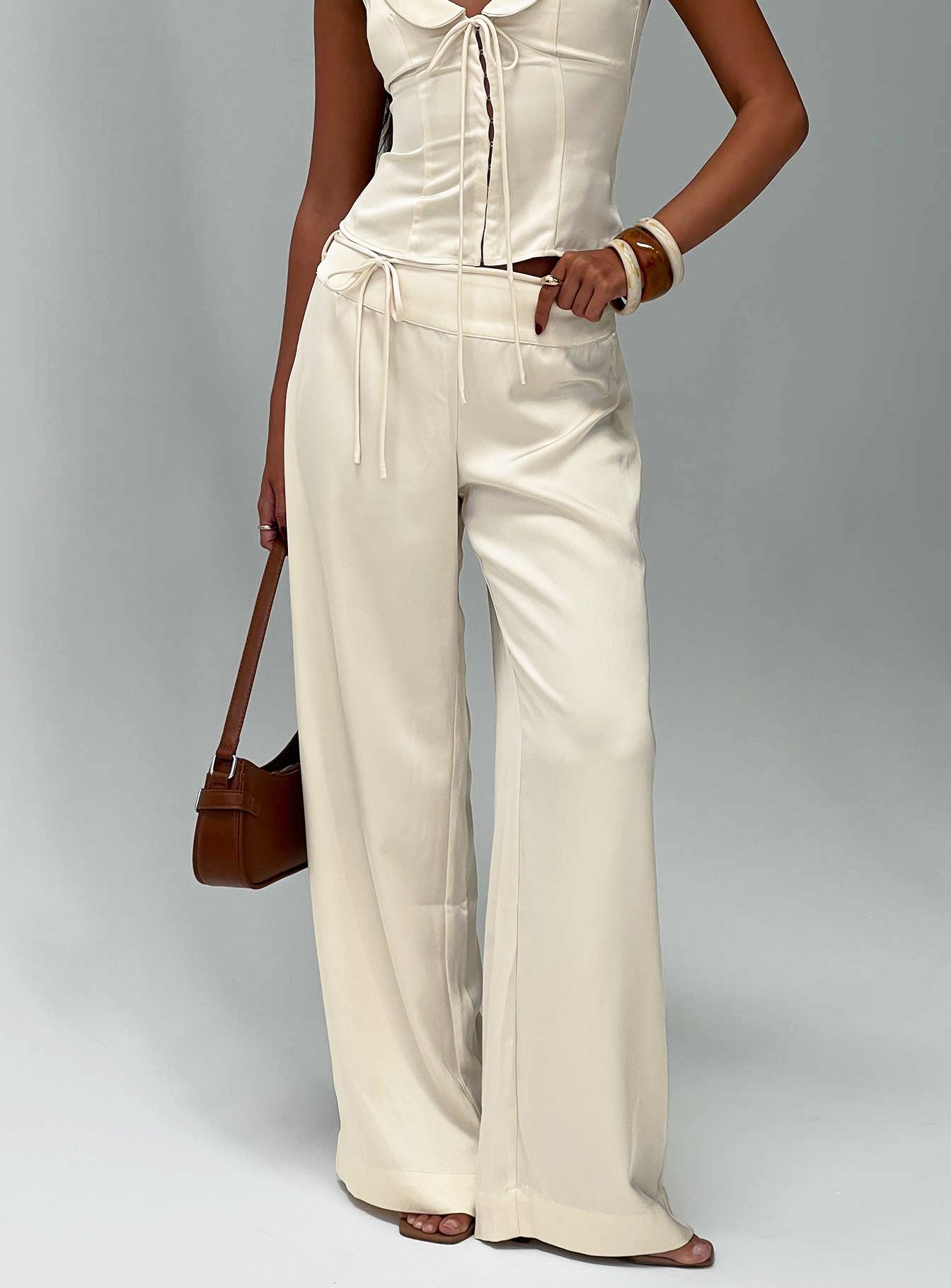 Aubrette Satin Tie Pants Cream
