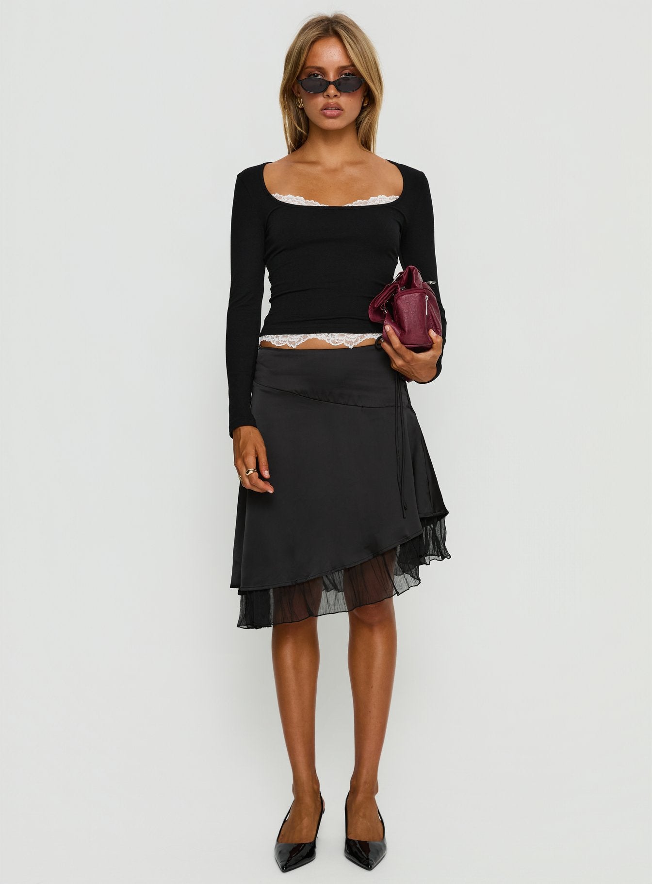 Falling Through Lace Detail Long Sleeve Top Black