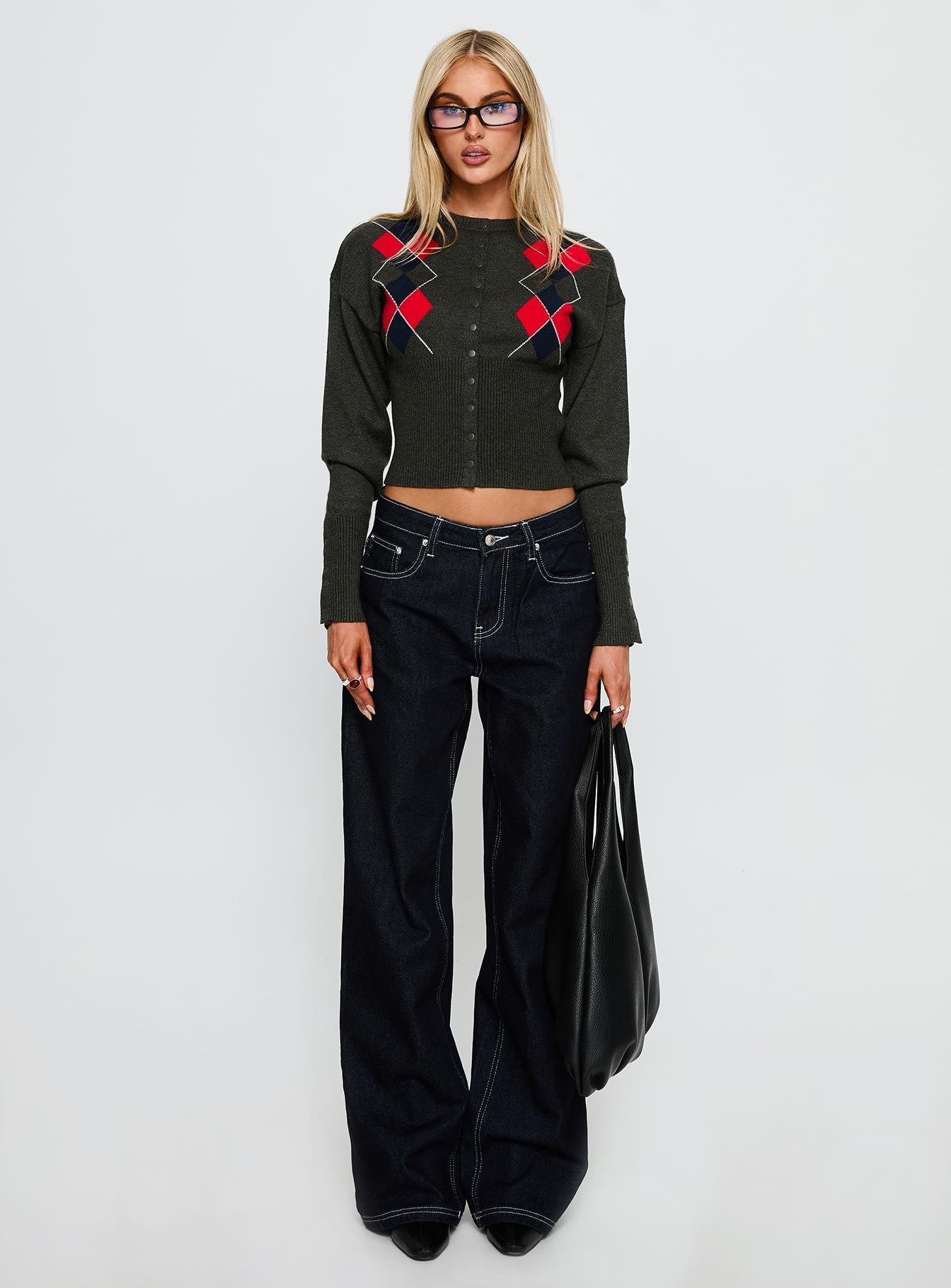• Crew neckline, button-up closure, fitted waist, long sleeves