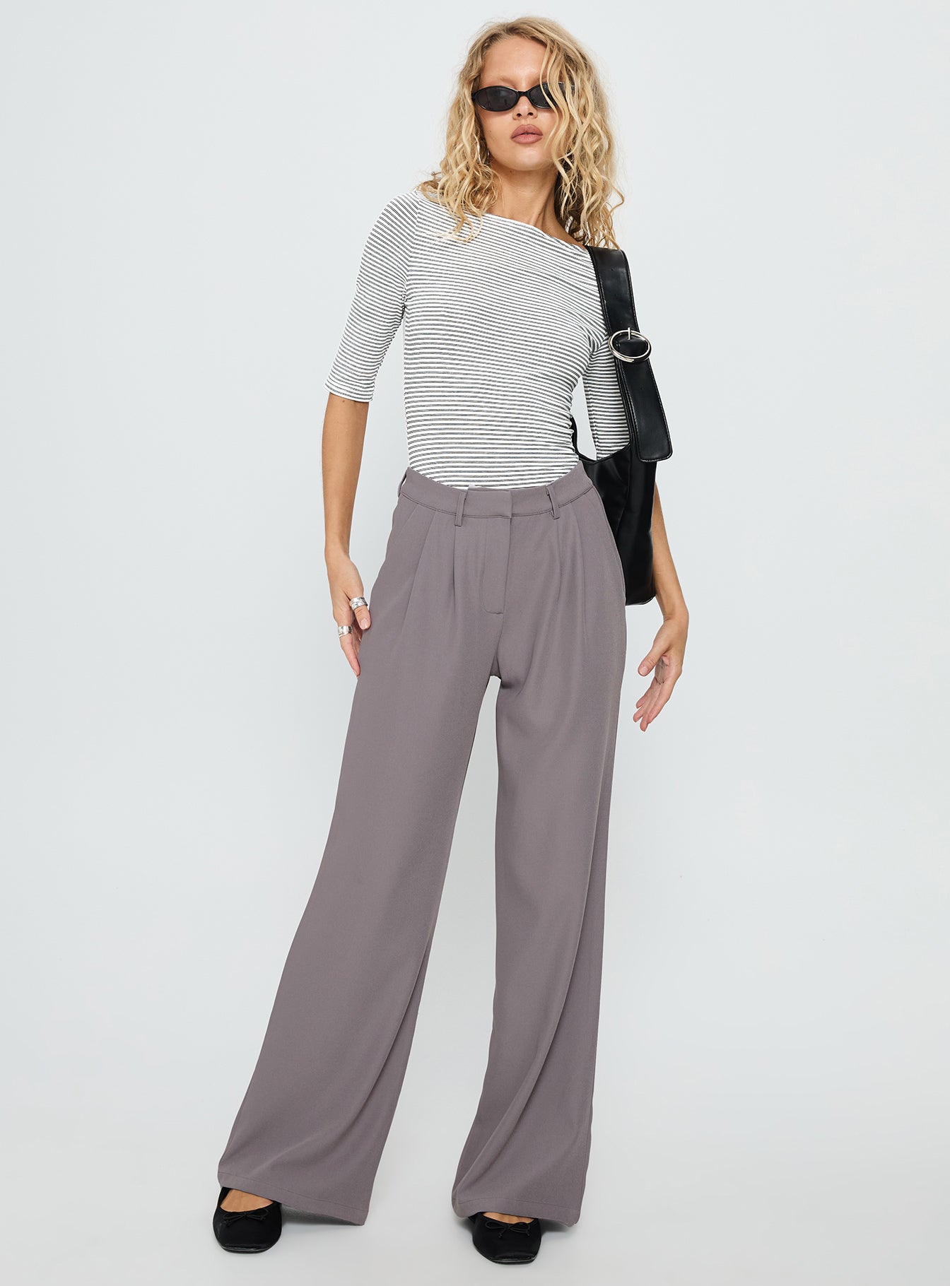 • Stripe print, boat neckline, press clip button at base, high-cut