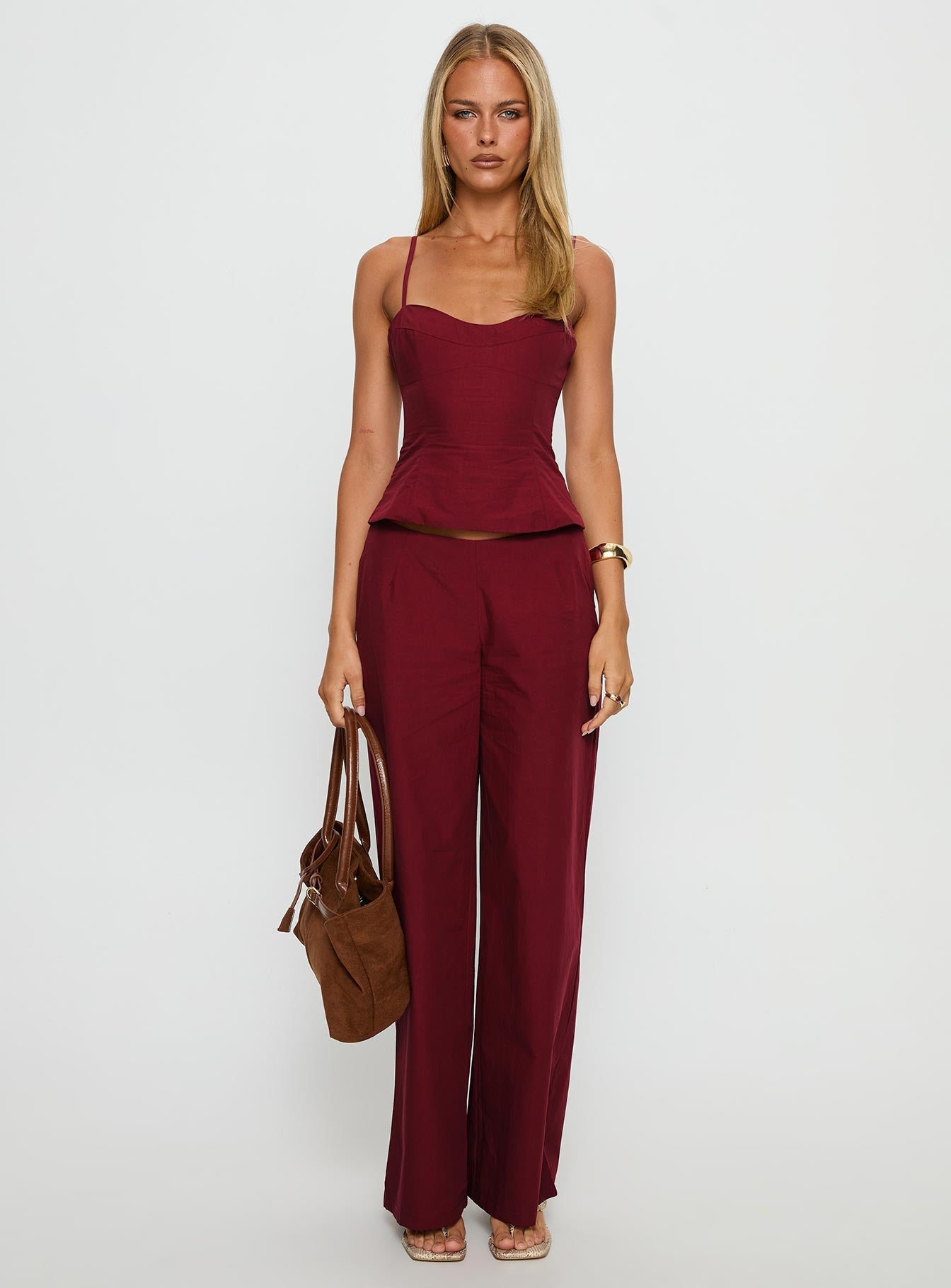 • Sweetheart neckline, adjustable straps, zip at back, wide-leg cut, zip closure at side, mid-rise fit