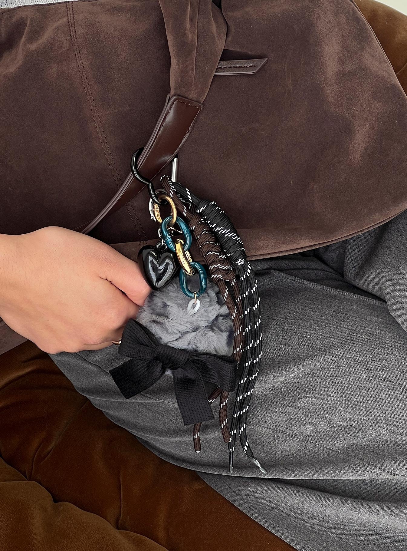 • Gold & silver hardware, multi-charms, keyring & clasp